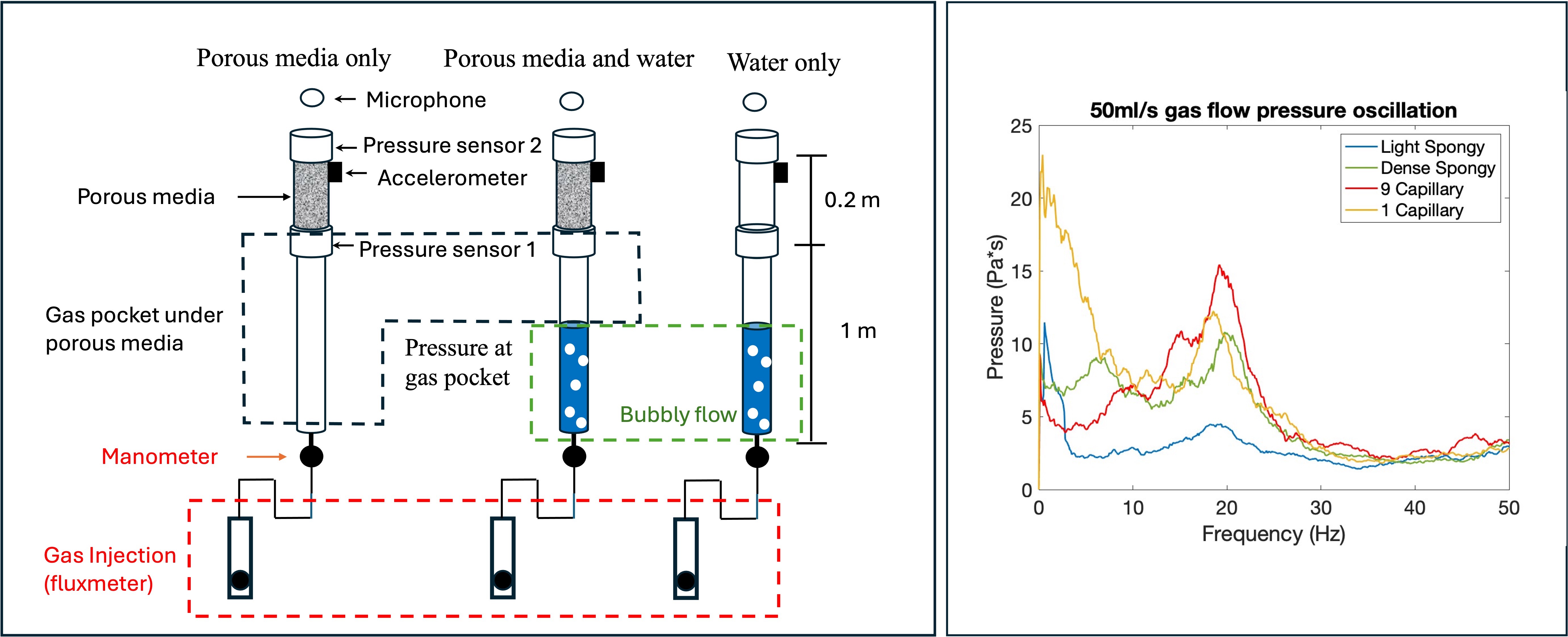 Through laboratory experiments conducted with INGV, Italy, we simulate pressure oscillations generated by gas flow through bubbly flow and porous media systems, which represent potential analogs for volcanic LP and tremor sources. The results demonstrate that distinct pressure oscillation spectra emerge under conditions where gas is temporarily trapped beneath porous media, supporting a mechanism for gas-driven seismic signals in volcanic environments.